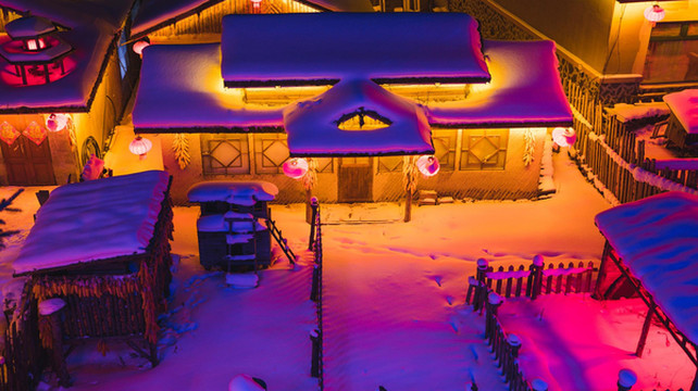 此时正好下起了雪,雪花在镜头下若隐若现,特别的美妙。