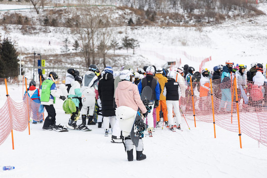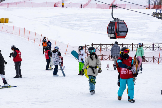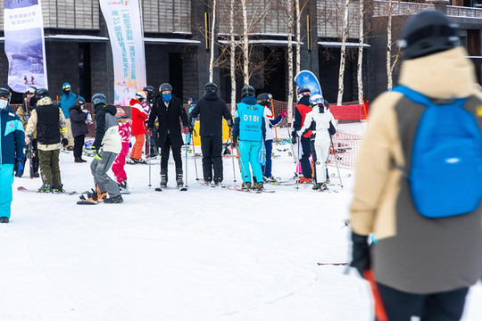 滑雪的初学者也非常的多,虽然这里所能容纳的人数很多,但是其游玩的设备也是有限的,所以我们还能看到很多人在外面排队等候。进入了滑雪场地,大家也是有序的分散开来,去寻找适合自己的赛道。拥挤的人群瞬间就变得稀疏起来。
