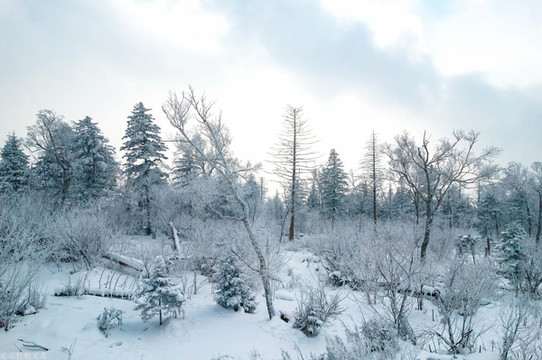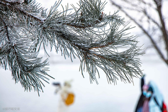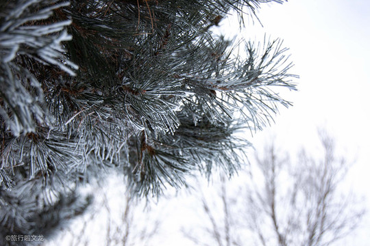 雾凇形成是一种水汽遇冷凝华所形成的壮观景象,当然雾凇的形成条件是十分苛刻的,只有在特定的条件之下,还有极其寒冷的气温之下,才能观赏到雾凇的奇异景观,然而冬季在吉林市雾凇的景观是平常不过的景色了。雾凇这个词在南北朝时期就已经出现了,靠近一点看雾凇,我们可以看到雾凇是那种在零下没有凝华的水蒸气在树叶树枝等的物体上凝结而形成的白色,有结块的形象,这样一个非水非雪的雾凇,形成的白色且不透明的纯净物,形成了奇异的景观。