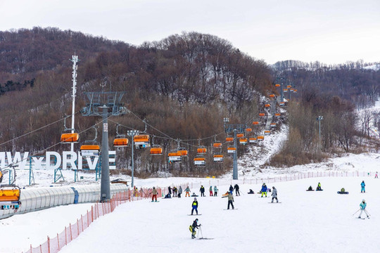 在滑雪场里滑雪,或者是坐在缆车上观景的游客都是很多的。我们知道滑雪的黄金地带是北纬43度,所以松花湖畔的万科松花湖到滑雪场这里是属于滑雪的黄金地带,这个滑雪场是被国际检验和认可,是名副其实的。