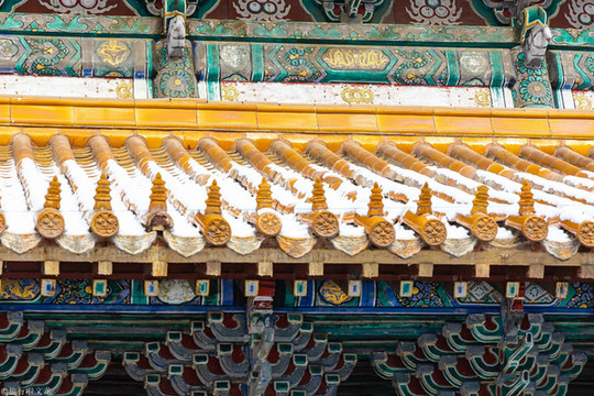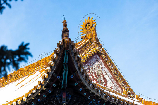 大成殿为庙内最大建筑,规格很高面阔十一间,和故宫太和殿相似。石栏砖砌,雕栏画栋,红墙金瓦,飞檐斗拱,红墙黄瓦,殿宇轩昂,配饰雕琢,无不精工。我们可以从中感受到中国古代建筑的独特魅力。绿树掩映,太成殿虽身处闹市,却显得十分静谧安详,与清澈的蓝天相得益彰,不卑不亢地展示中式建筑的美学涵养。