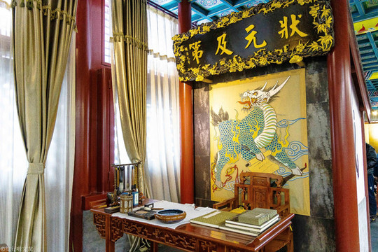 我们还可以看到一个牌坊,上面写着“道冠古今”,也称为“义路”,它与东侧的礼门“德配天地”遥遥相对,人们从下走过,若能将礼仪道德留在心中,我想,这就是设立这两个牌坊的最好的意义了吧。的确,依照礼节,出文庙是要从“义路”出的,这也不正暗示了人们要遵守礼仪吗。