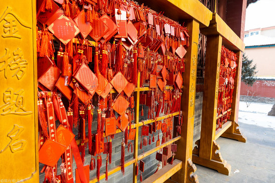 每逢中高考前,就有好多学子来此祈福,希望能够金榜题名,独占鳌头,挂祈福牌,十分热闹。