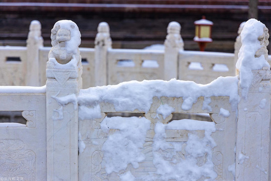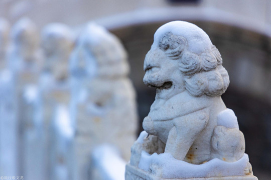 我们来到泮池旁,一架石桥直通红色的大门,走上泮桥,泮桥上两排石狮仿佛在一直凝视着自己,让我感到十分庄严肃穆,也更显文庙的庄重,神圣。文庙泮池呈半圆形,上面架着泮桥,它的寓意是人们踏上泮池,便进入了最高学府。“入泮”这一说法,也由此得来,在清代时,人们对考取秀才的称为入泮。泮桥上的石狮子不知经历了多少风雨,它的外表有些已经被风雨侵蚀了,但是它仍然傲然挺立在泮桥上,就算头顶风雪,也要守卫这方净土。