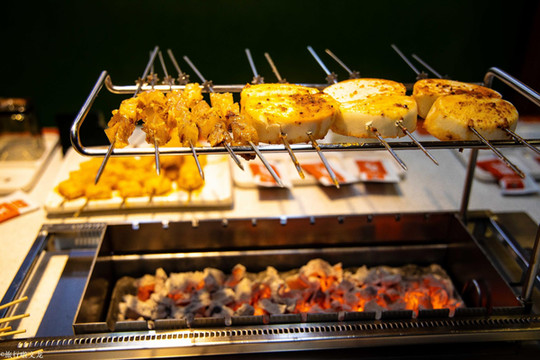 不得不说东北的烧烤的品种是十分丰富的,而且靠近黑龙江地域的烧烤是受到俄罗斯饮食上的影响,所以这里的烧烤大多数都是腌制好的牛肉和羊肉的大肉串,分量很足,但是在辽宁受到东北延伸,以及河北,及内蒙古文化的影响,这里的烧烤食材就更加的多了,除了牛,羊,家禽等传统的肉类之外,也出现了各种特色的海鲜美食,我们所来到的吉林市更是受到了朝鲜族饮食的影响,烧烤的风味变多了起来,所用的食材很新鲜,且这里的蘸料更偏向于朝鲜族的风味。约上三五个好友一起相约于延边烤串,这里的营业时间是到凌晨的2点,坐在这里可以尽情的吃上一顿美味的烧烤夜宵。烧烤所用的炭火也并不是很刺鼻。完全能接受,自己烤出来的东西,再加上灵魂的蘸料,这就是烧烤的精髓所在。