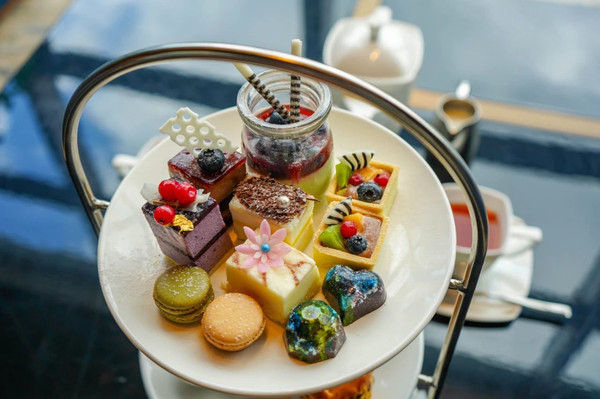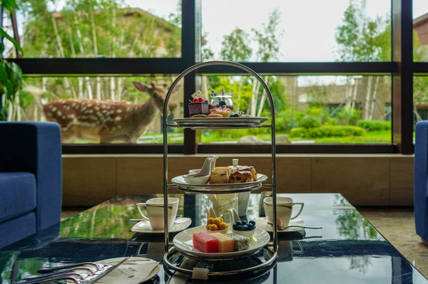 在大堂吧和梅花鹿喝下午茶