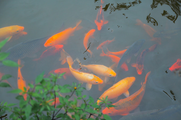 “闻人声而来,见人影而聚”,即使你用手去触摸它一点也不怕人。若是往 水里 撒上一些食物,就会迅速聚拢来一群鲤鱼抢食。