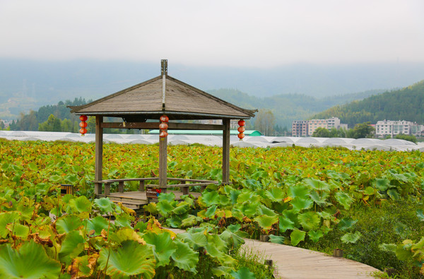 荷塘中间有几处亭台,可与荷花亲密接触。比较惋惜的是我们去的时间稍微晚了一点点,只剩零星的荷花孤孤单单。可以想象到夏天荷花盛开之时,十里荷花碧水长天那时的鲤鱼溪才是真的漂亮!