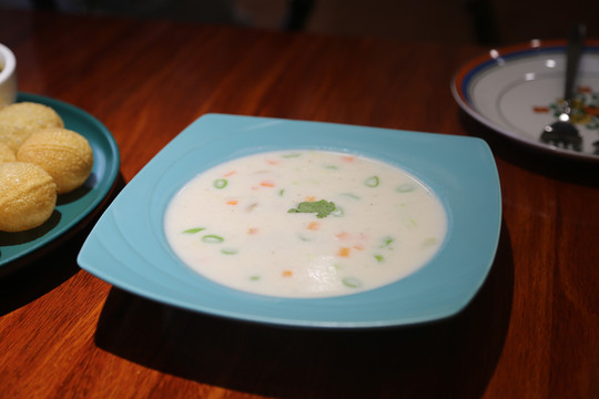 吃了两天湖北菜,突然想吃外国菜。没想到这家尼泊尔菜竟然很好吃!藏在居民区的巷子里。黄油烤馕NO.1,搭配咖喱鸡肉的咖喱汁!奶油蘑菇汤用料也很足,胡椒味偏重但恰到好处,意外的很喜欢。是会二访的餐厅!