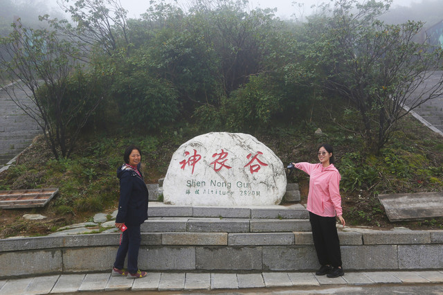 抵达神农谷的途中,能见度小于5米,老司机基本没问题,新手建议停靠安全区域再出发。都说神农谷是整个风景区最漂亮的地方,如果体力不太好,或者时间不充裕,就不建议爬神农谷,耗时耗体力。徒步爱好者这里是你的天堂!据说游玩时间3~4小时。带着JO妈JO妹拍一张打卡照,也算到此一游啦。