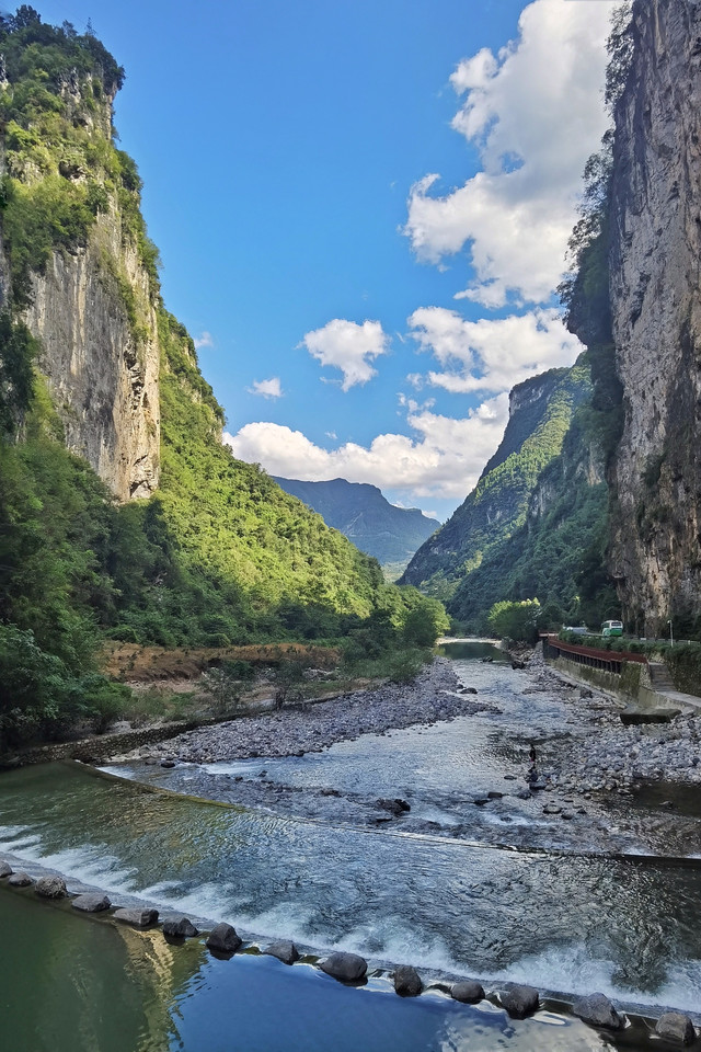遇到好天气的话,【一线天】请务必要停下来好好休息一会儿。沿岸的基础设施建设的比较完善,可以作为进入木鱼镇的休息站点。来一碗炕土豆,听听水流声,看看这个短暂而美好的一线阳光。(洗手间在最前方,靠山左侧)