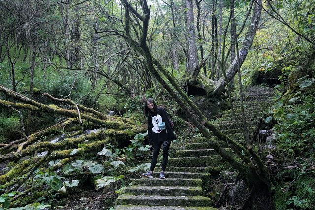第一个景点是【金猴岭】,值得一走,有瀑布和错综复杂的树木,极其原始。走到石板桥就可以原路返回。往返10分钟+拍照约20分钟(顺便和爸爸视频了~)当天上山后温度急速降至14度,没风的时候一件厚点的戴帽卫衣还勉强能顶住。10月份后的金猴岭一定要多穿!