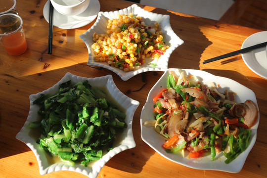 这家餐厅在酒店出门左转再右转直走200米,开车1分钟的路上。餐厅位置非常多也很干净,在网上评分高所以来试试看。没想到味道不错而且老板和老板娘都特别亲切热情,还给我们送了野生核桃。