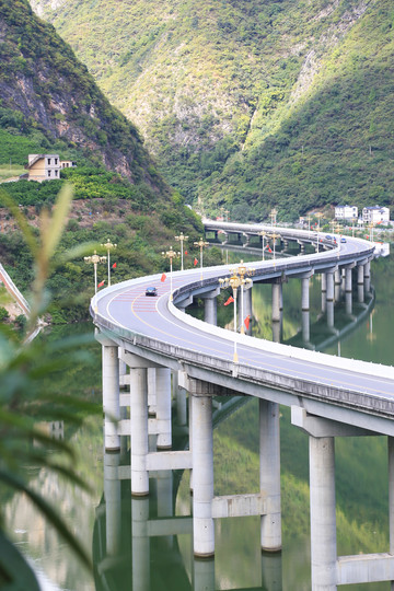 【中国最美水上公路】:又名古昭公路。常见的公路都是需要炸山和开隧道,但是为了保护兴山县的生态环境,不破坏植被,最终决定在两岸峡谷中,河道上架桥,306根桥墩,两座特大桥组成,这才有了画面中的最美水上公路,同时也是中国第一条生态环保公路。