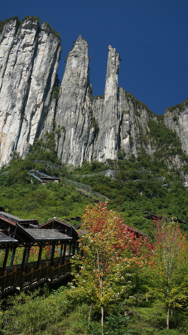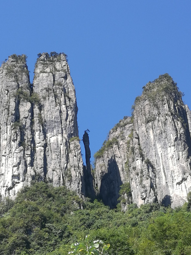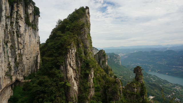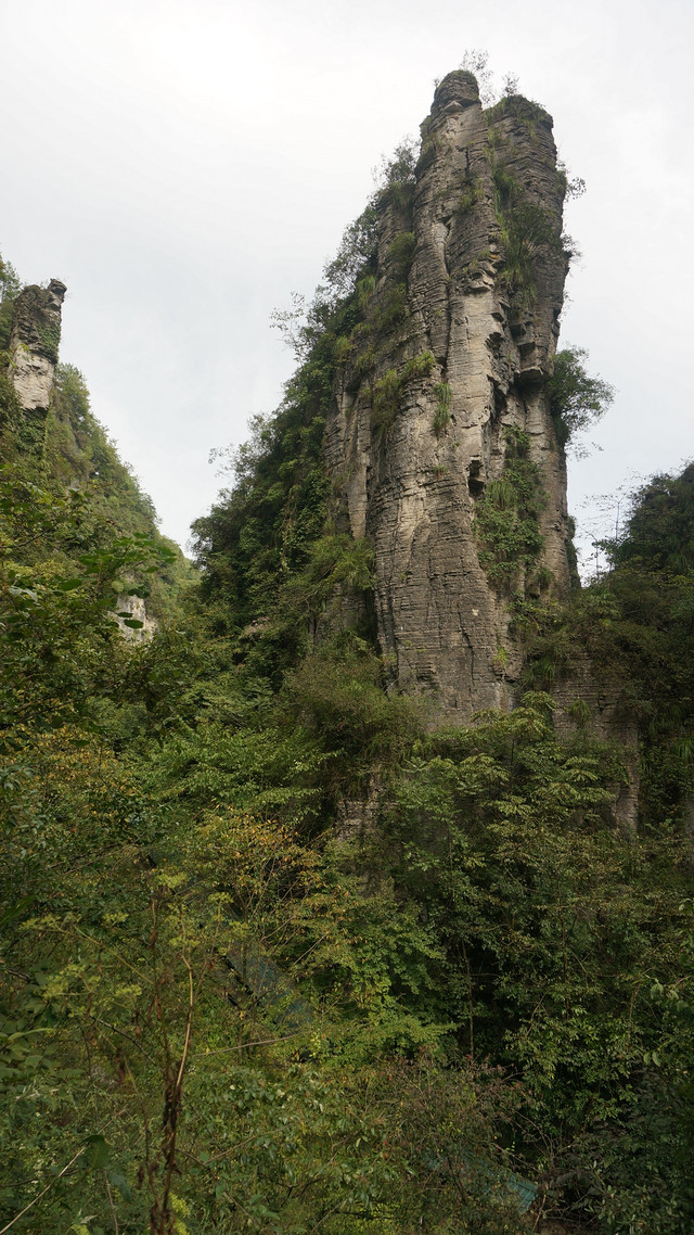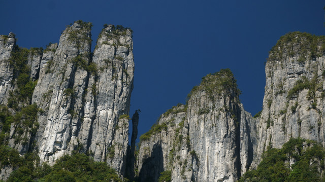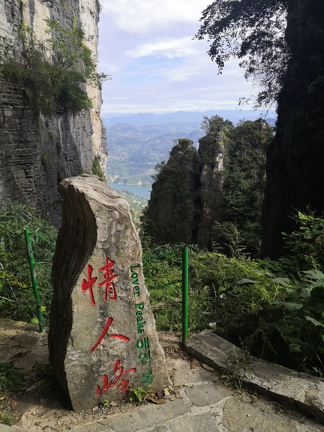 情人峰中高大挺拔的是廪君峰,中间是盐神峰,还有座小的则是君子峰,三座峰共同构成情人谷。