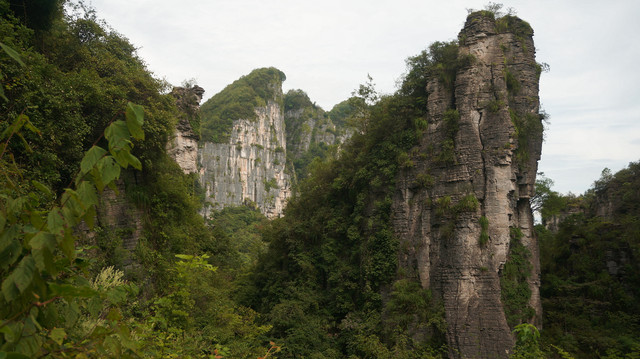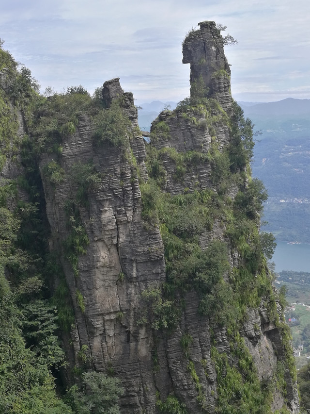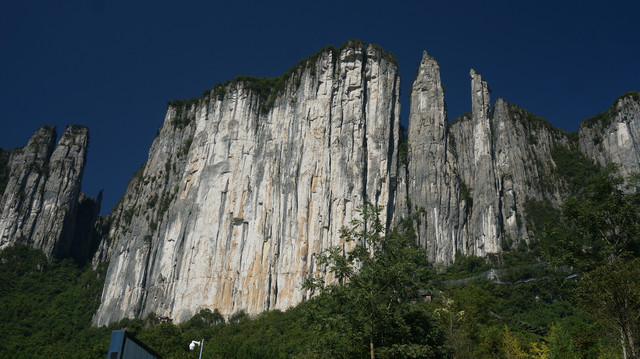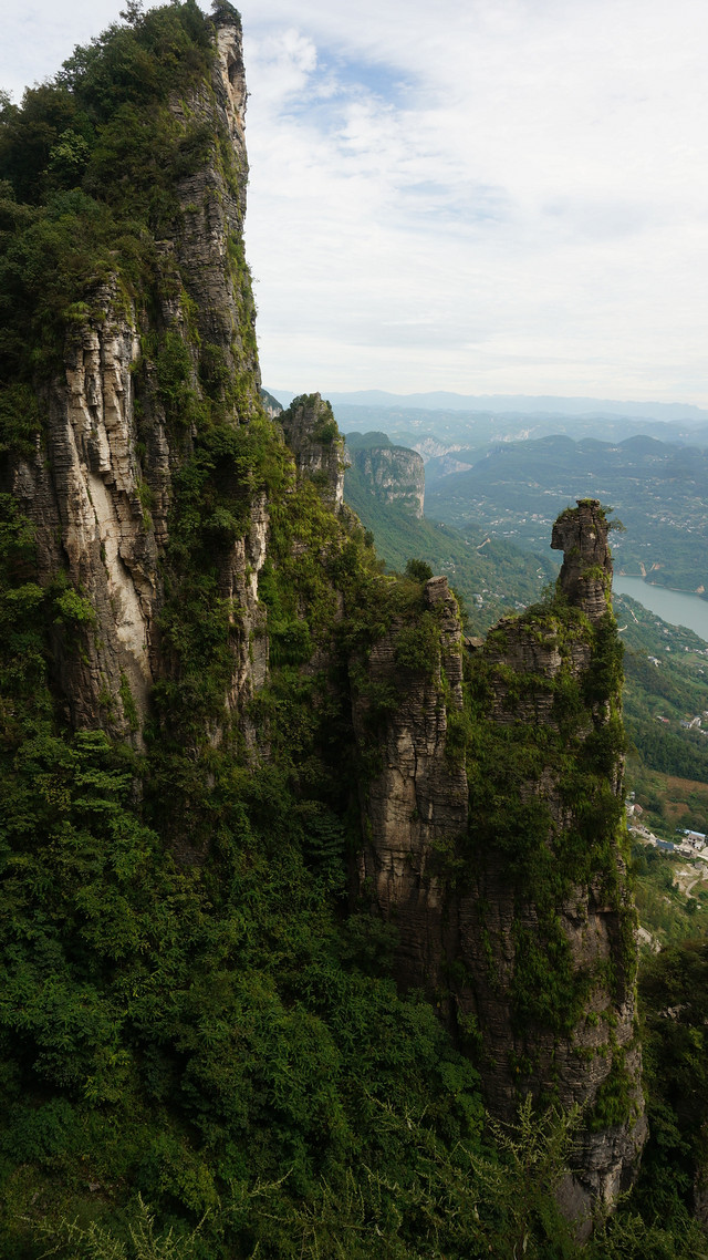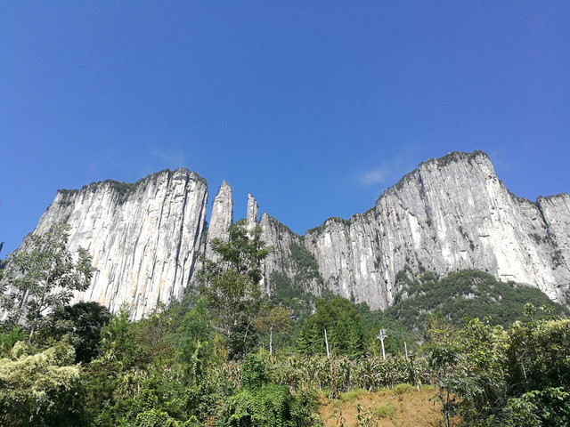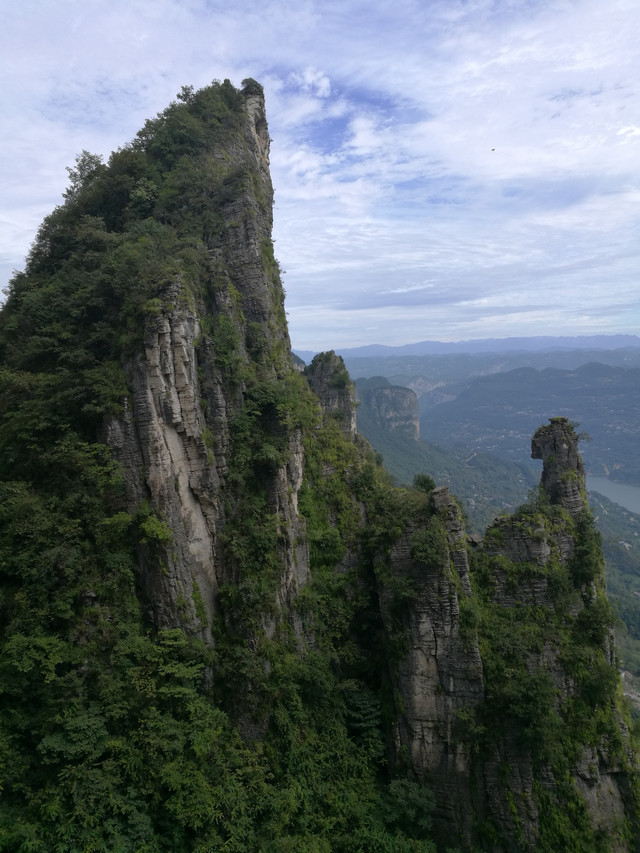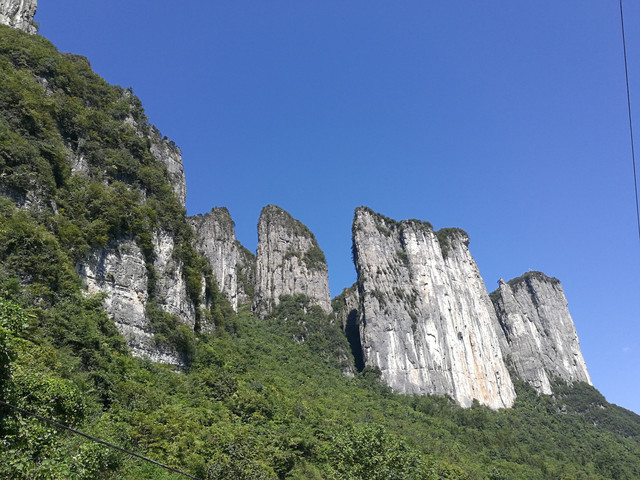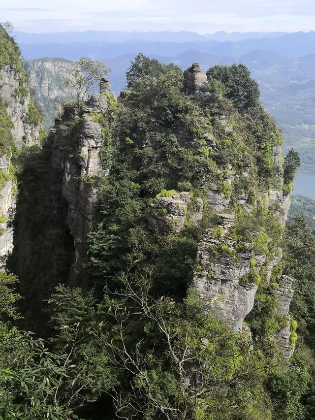 情人峰中高大挺拔的是廪君峰,中间是盐神峰,还有座小的则是君子峰,三座峰共同构成情人谷。