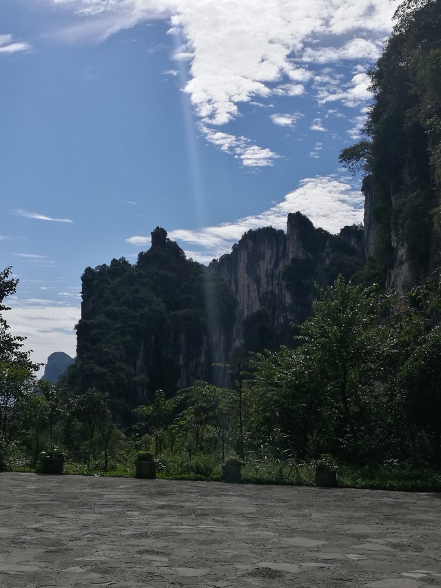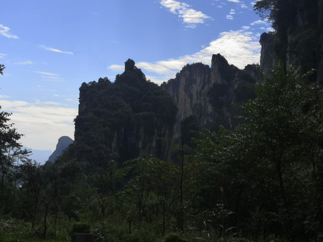 计划很完美,现实却是喜忧参半。喜的是天气给力,蓝天白云、阳光明媚;忧的是昨晚从民宿服务员那里得知,上半年的洪水给恩施大峡谷带来很大的破坏,云龙地缝景区几乎全毁,现已关闭,进行全面整修;七星寨景区许多区域也出现险情,目前只开放索道上站以南区域,即小楼门那一片。