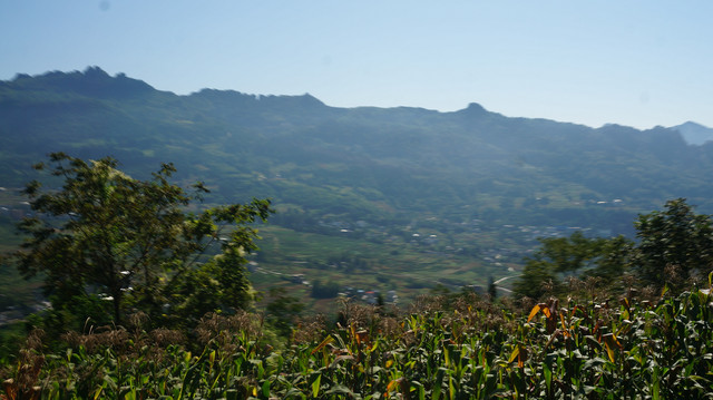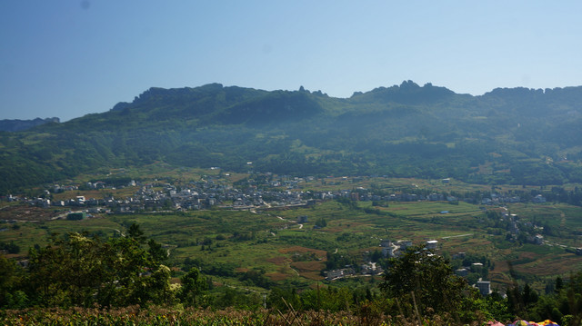 对面那道大山就是野三河风景区的一部分,我们刚才就从山那边翻越过来,全是山路,一个下坡就长达二十多公里。