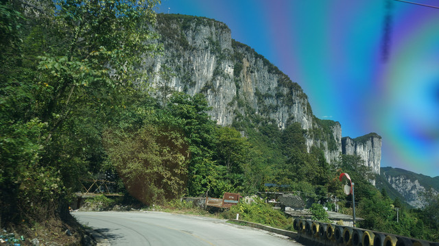 继续前行,这回是停在路边。不过很快就有人来驱赶,说是上方正在排石作业,很危险。匆忙照几张相就离开了。
