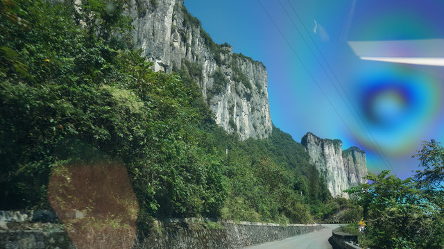 他开车带我们进景区,进门时他朝门卫点点头,就抬杆放行了。他告诉我们景区内道路虽然损坏不大,但受暴雨影响,路边悬崖上有石头松动,现在正在逐一排除,因此景区交通车也全部停驶了。