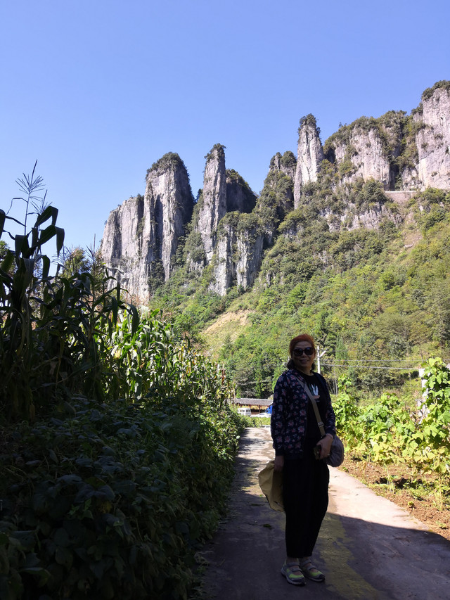 早饭后退房,开车前往恩施大峡谷景区。从我们入住的雨瑭沐云精品民宿到景区入口停车场约两公里,狭窄的小路不太好走,花了十几分钟。