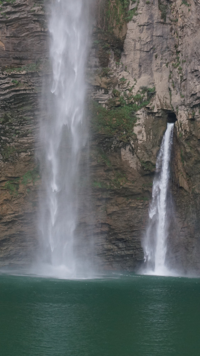 主瀑布傍边还有一个小瀑布,从岩壁的一个洞中流出。
