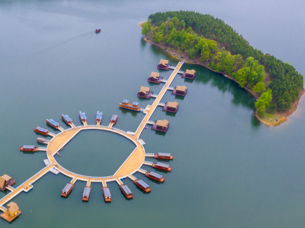蓝天白云,水上画舫、水上木屋别墅、鸬鹚,交相辉映,美不胜收,人文景观和自然景观完美呈现,令人赏心悦目流连忘返。关雎果园里还有杨梅、蓝莓、枇杷、黄桃、蟠桃、葡萄等健康天然无公害的食品供你采摘。