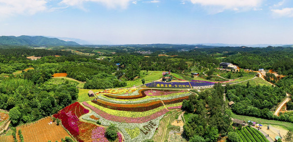 玉泉花海位于玉泉寺旁,距离仅600米,四百多亩婀娜多姿的山花与浑厚青郁的玉泉山交相辉映、和谐一体。梯田式生态花卉景观及丛林探险基地,辅以互动体验式游乐项目,构成了一幅生动而美丽的七色彩虹图。沿着一条由鲜花点缀的石板路蜿蜒而上,只见漫山遍野的各类花卉在广阔的天空下、白云缭绕争奇斗艳地开着。在百花之中如果醉了的话,可以尽情地放松躺在树林里的吊床上做片刻的休息,还有儿时的回忆。