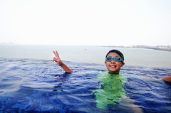 8月24日,出行以来的第一个雨天。估计是夜里下的比较大,早晨只是淅淅沥沥的飘着雨点。酒店退房,乘坐大巴从港珠澳大桥过关进香港,过桥时,天气很给力,右边天空开始放晴,可以透过车窗看到两边海景。入关地点离香港机场非常近,可以看到飞机起降,车上的小朋友非常兴奋。因为过关后的第一件事是冲向了厕所,所以强烈的感觉到了厕所的差距,干净无异味,而且厕所里备有厕纸,比起俺们小地方那是非常人性化了。