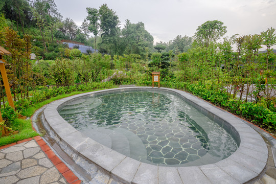 里面的环境,很像进入一个古典园林的感觉,木质结构,古色古香的感觉。很多小泡池都有树木遮挡,真的很好的保护了自己的私密性。两三个友人相约一起还是非常惬意的。