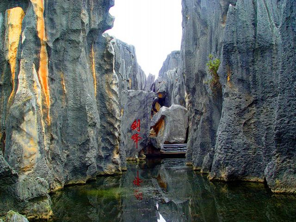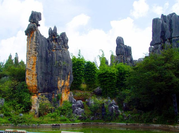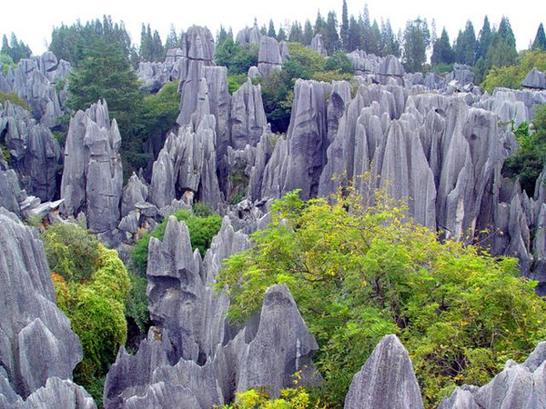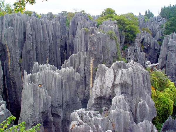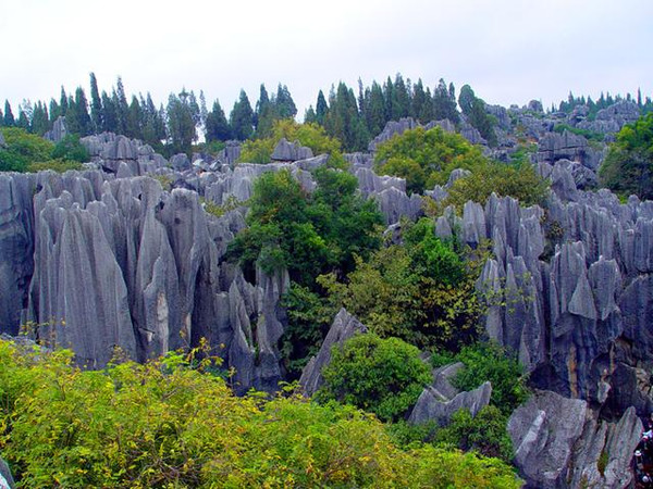 石林景区内石峰林立、万峰迭嶂,千姿百态的石峰、石柱、石花、石坪、石流, 犹如一片莽壮黝黑的森林,被誉为“天下第一奇观”。