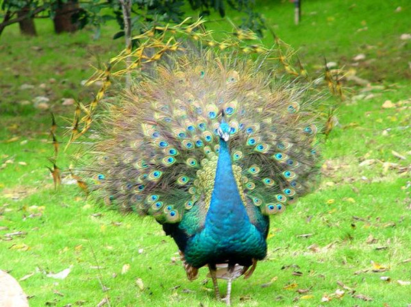 漫步于七彩云南孔雀园,林间飞瀑跌宕,溪水潺潺,鸟语花香,一千多只孔雀在林中结伴散步,或独栖高枝,卓然不群,一米多长的翠羽洒洒飘逸;或腾跳嬉戏,体态优美,舞姿精灵俊秀;或成双入对,亲昵细雨,清纯甜蜜;或展翅开屏,斑斓绚丽,雍容华贵。