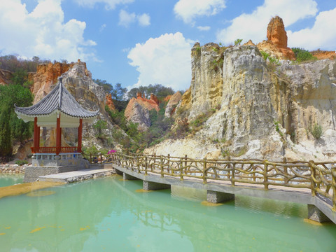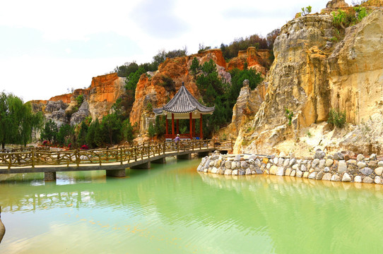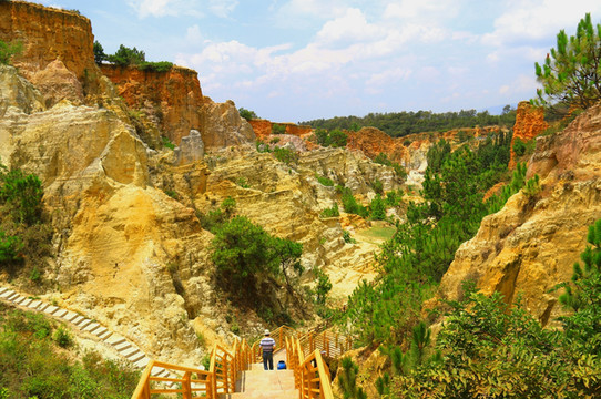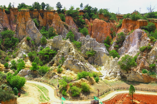 6、彩色沙林位于曲靖市陆良县,从昆明出发自驾不超过2小时就能到达。如果游完路南石林顺道过去的话,只需半个多小时。这里没有路南石林那么出名,游人相对较少,是个可以静心赏景的地方。