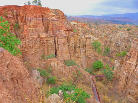 5、游览元谋土林可坐景区的电瓶车一直到山顶的观景台,然后再顺着蜿蜒的石梯和小道向下走,沿路都是土林景观,可以零距离接触到土林。边走边观赏,慢慢就到景区出口了,这样子游览会更轻松一些。