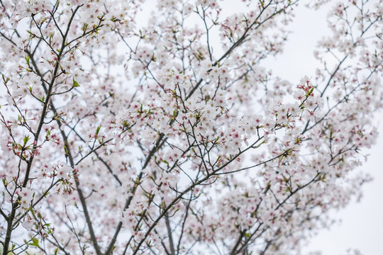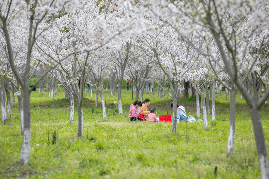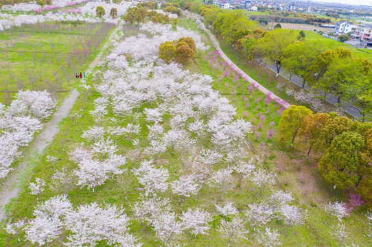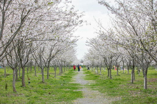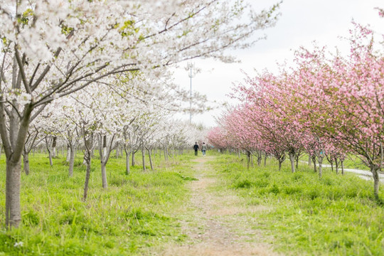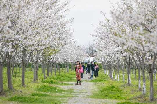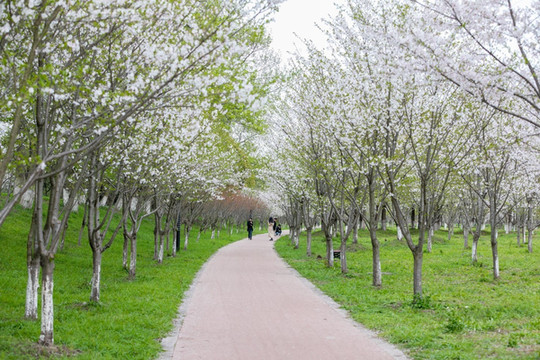 粉白的樱桃花在枝头竞相开放,驻足樱花长廊放眼望去,樱花如浪花般层层涌来,令人目不暇接。
