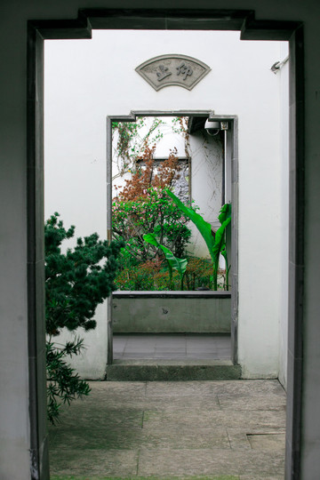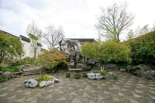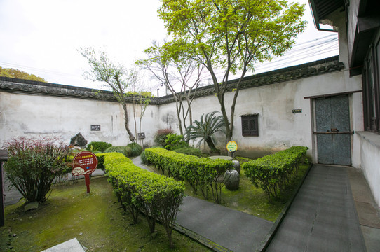 从展厅走出是一座后花园,一条鹅卵石铺砌的小路伸向角落,后花园中种植了许多的盆栽绿植,且有一口水井。站在花园之中,似乎看到了先生坐在石墩上休息的场景。