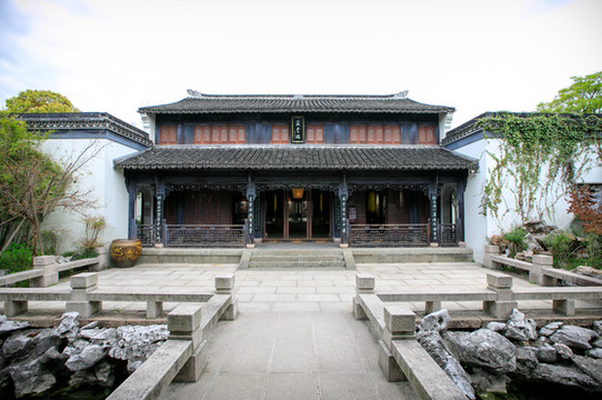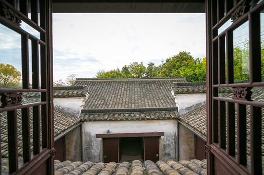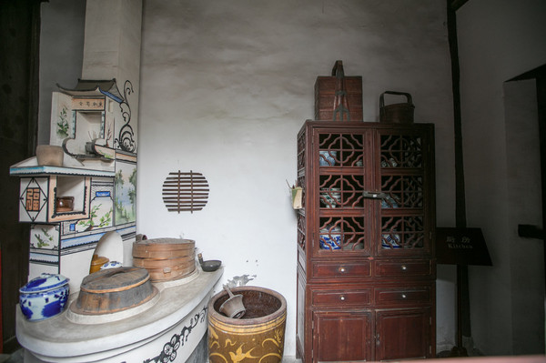 从厅堂穿过走廊来到两进之间的天井,这里也是先生一家人生活的地方,天井两侧的东西厢房分别是厨房和磨房,后侧是一座两层木结构建筑的房屋,典型的江南水乡古建筑风格。