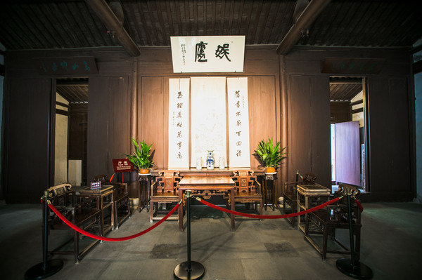 穿过院子来到厅堂之中,正厅中央悬挂着横匾“娱庐”,在1886年也就是先生9岁时其父在此建造了这座房屋并取名“娱庐”,先生一家人从盐官镇双仁巷搬迁到了此处居住,王国维先生在此度过了13个春秋,之后离开家乡外出游学。