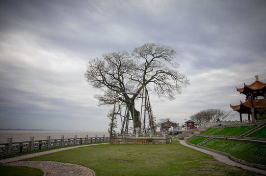 因为听园区工作人员说大概中午12点半潮来,我们提前进了公园,在堤坝上,看到了明代占鳌塔和乾隆手植古朴。