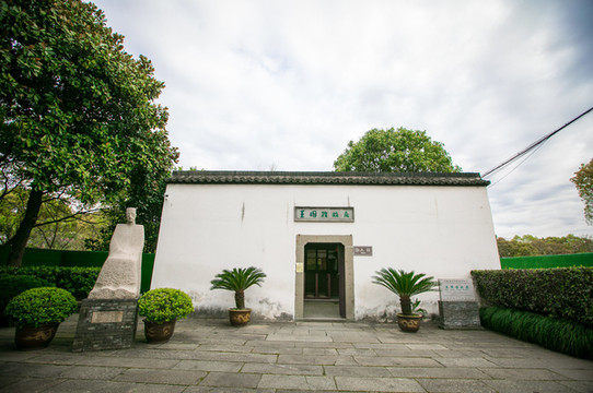 王国维故居所处位置比较偏僻,故居位于盐官古镇最西边、靠近钱塘江。故居坐北朝南,一面白色的墙壁朴素无华,整个故居建筑面积不足300平方米,与普通人家看似无异,但正是在这样的环境下先生自幼勤奋好学,为后来的学术研究打下了坚实的基础。