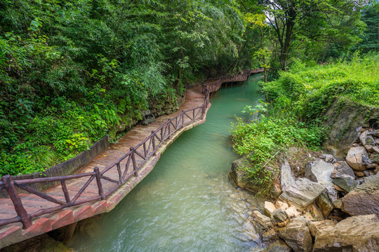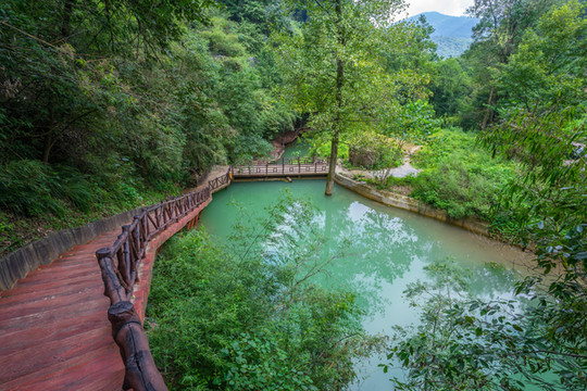 乘坐缆车到达河谷中,微风拂面,非常凉爽,走在河边的栈道上听着鸟叫,宁静、原始,是一个放松心情的好地方。