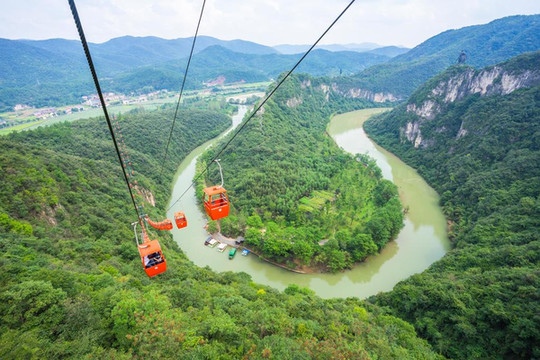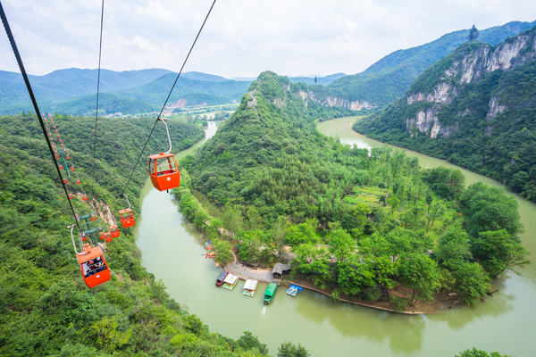 沿茅坪河向出口方向走,抬头便可以看到襄阳第一索,春秋寨索道建于望月山上,双线全长2000米,来回需要45分钟,99个吊篮穿梭如织,形成一道靓丽的风景,乘索道可达望月山顶,在这里可以尽览山川美景,田园风光,非常的壮观,让人流连忘返。