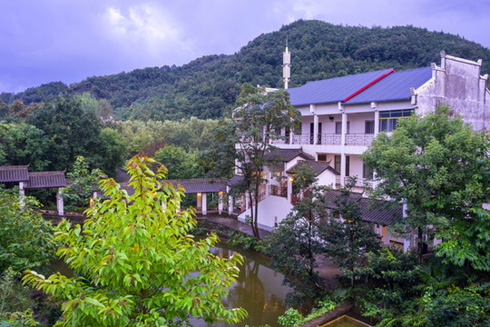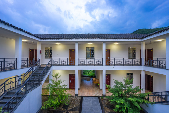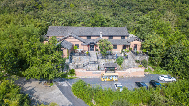 山庄有各类客房及套房66间,分别以梅、兰、竹、菊、荷、紫薇、牡丹命名,依山而建,白墙黑瓦,远望而去如一幅水墨国画。