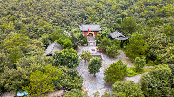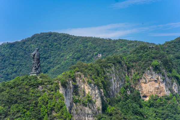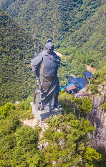 到达最高处的一个观景平台,可以看到对面望月山上的一个巨大的关羽雕像。赶紧用无人机飞过去,才一睹真容。真的非常霸气威武。