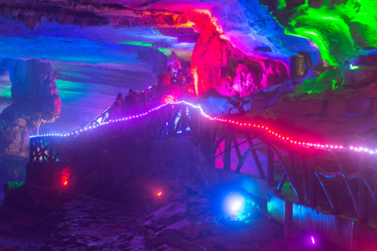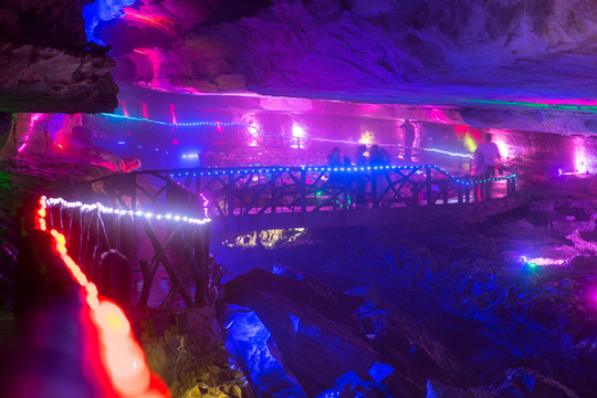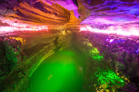 黄龙洞幽深诡谲,暗河冲击,水声潺潺,因传说黄龙在此居住而得名。暗河、碧泉、千奇百怪的钟乳石,一个值得游的溶洞的要素,黄龙洞里都有。