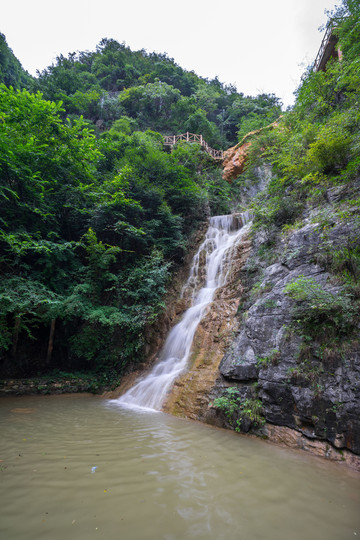 沿着栈道向上走去,便闻水声,声如奔雷,澎湃咆哮~当你走近瀑布,看见舒缓的河流突然一下子,如同万马奔腾汹涌而下,发出震耳欲聋的声音,岩下波涛滚滚,腾起层层烟雾。