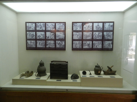 纪念展厅的第一部分是“出身世医 少年勤奋”。李时珍(1518—1593),字东璧,号濒湖,晚年自号濒湖山人,湖北省蕲春县人,生于明武宗正德十三年(公元1518年),卒于神宗万历二十二年(公元1593年),去世后明朝廷敕封为“文林郎”,是明代著名的医学家、药物学家。李家世代业医,祖父是“铃医”。父亲李言闻,号月池,是当地名医。那时,民间医生地位很低。李家常受官绅的欺侮。因此,父亲决定让二儿子李时珍读书应考,以便一朝功成,出人头地。李时珍自小体弱多病,然而性格刚直纯真,对空洞乏味的八股文不屑于学。自十四岁中了秀才后的九年中,其三次到武昌考举人均名落孙山。于是,他放弃了科举做官的打算,专心学医,于是向父亲求说并表明决心:“身如逆流船,心比铁石坚。望父全儿志,至死不怕难。”李月池在冷酷的事实面前终于醒悟了,同意儿子的要求,并精心地教他。