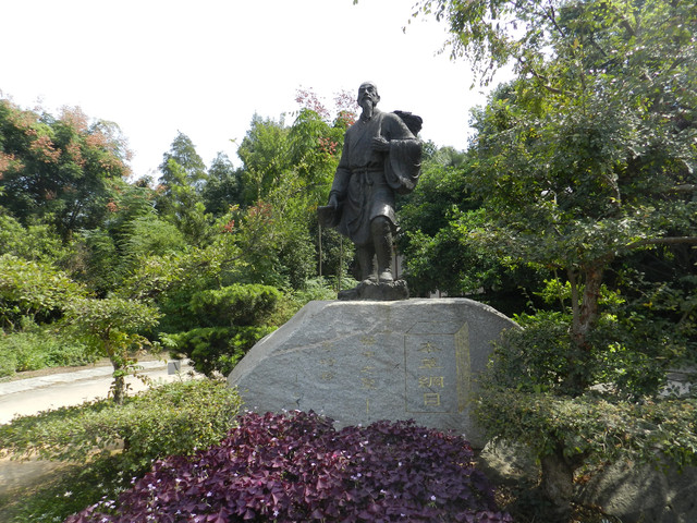 百草药园中心矗立着李时珍的全身塑像,一身行装,身背药娄,形象表现了老先生“远穷僻壤之产,险探麓之华”艰苦探访各种药物的形象。为了编著《本草纲目》,李时珍参考了历代有关医药及其学术书籍八百余种,可谓“读万卷书”;还穿上草鞋、背起药筐,在徒弟庞宪、儿子建元的伴随下,远涉深山旷野,遍访名医宿儒百姓,搜求民间验方,观察和收集药物标本,足迹遍及河南、河北、江苏、安徽、江西、湖北等地区,是“行万里路”。正是通过这种实地调查,李时珍搞清了许多药物的疑难问题,并纠正了前人的很多错误。