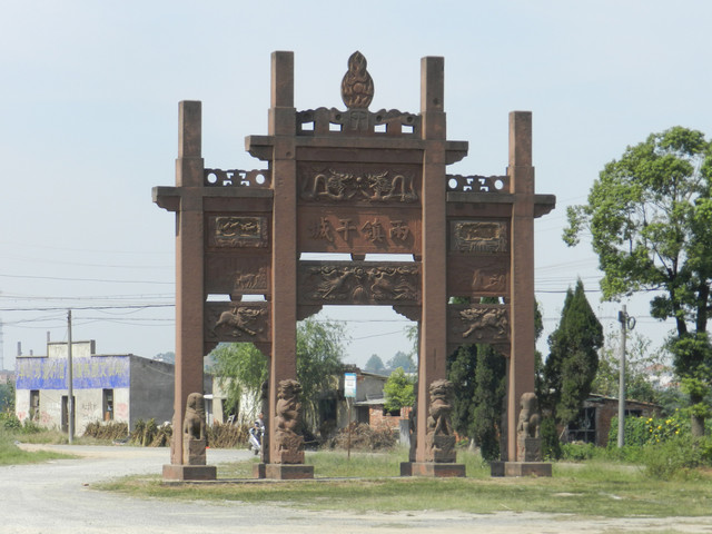 2013年10月4日,我与夫人从安徽出发,一路西行,开车返回湖北黄石,途径蕲春县,这里是医学大家李时珍的故里,蕲春因李时珍而闻名,李时珍因《本草纲目》而伟大,李时珍是我们湖北人的骄傲,应该去拜谒一下。于是,我们决定提前下高速,去参观李时珍纪念馆。我们的车子开到了雨湖岸畔,雨湖自明代以来就是“蕲阳八景”之一,只见在一条狭长的带形地段上巍然耸立着一片古朴典雅、气度恢宏、错落有致、庄严肃穆的仿明建筑群,松竹苍翠,白墙绿瓦隐约其中,这就是李时珍纪念馆了。李时珍纪念馆占地面积50000平方米,由本草碑廊、纪念展厅、药物馆、百草药园、李时珍墓园五大部分组成,馆内树木茂盛,绿水环绕,坡岗起伏,鸟语花香,仿佛世外桃源,曾有诗曰:"秋月春风四百年,雨湖烟树忆前贤"。我们朝着纪念馆的方向前进,远远就看见一座红棕色的石牌坊,与纪念馆的大门遥相呼应,牌坊上面有四个大字“雨镇千城”。