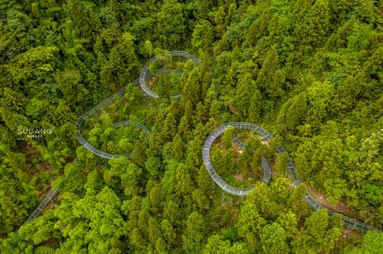 山泉滑漂依山而建,穿越高山竹海,航拍之下犹如巨龙盘踞在竹海中。游客乘坐橡皮艇盘旋而下,可同时赏竹海,望梯田,观云海。